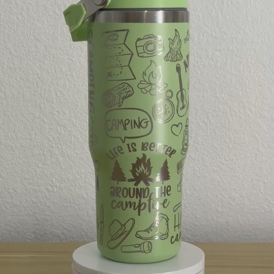 Embrace the great outdoors with this rugged stainless steel tumbler, adorned with fun camping doodles and designs featuring everything a true adventurer needs—from tents and campfires to hiking boots and backpacks. Whether you're sipping your morning coffee by the fire or staying hydrated on the trails, this tumbler keeps your drinks at the perfect temperature hot or cold, thanks to its durable double-wall insulation.